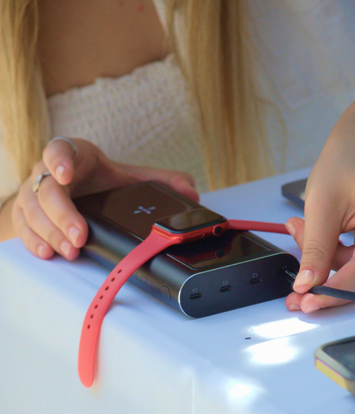 Dedicated wireless fast charging for Apple or Samsung Watches.
